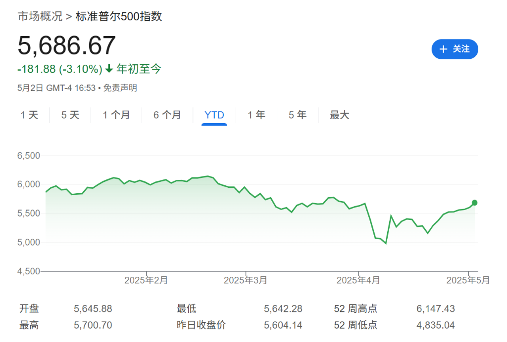 另一方面,标普500指数刚刚结束了自2004年以来最长的九天连涨——上涨约10%,抹去了上个月特朗普总统宣布关税后的大幅下跌。今年以来,该指数仅下跌3.1%。债券收益率和美元已经企稳,表明投资者对未来的担忧情绪有限。